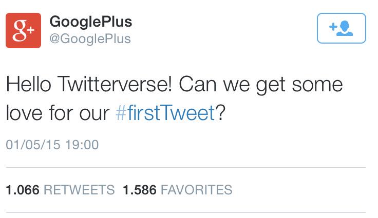 والوحيدة التي غردت بها شبكة Google plus على موقع تويتر، ولم